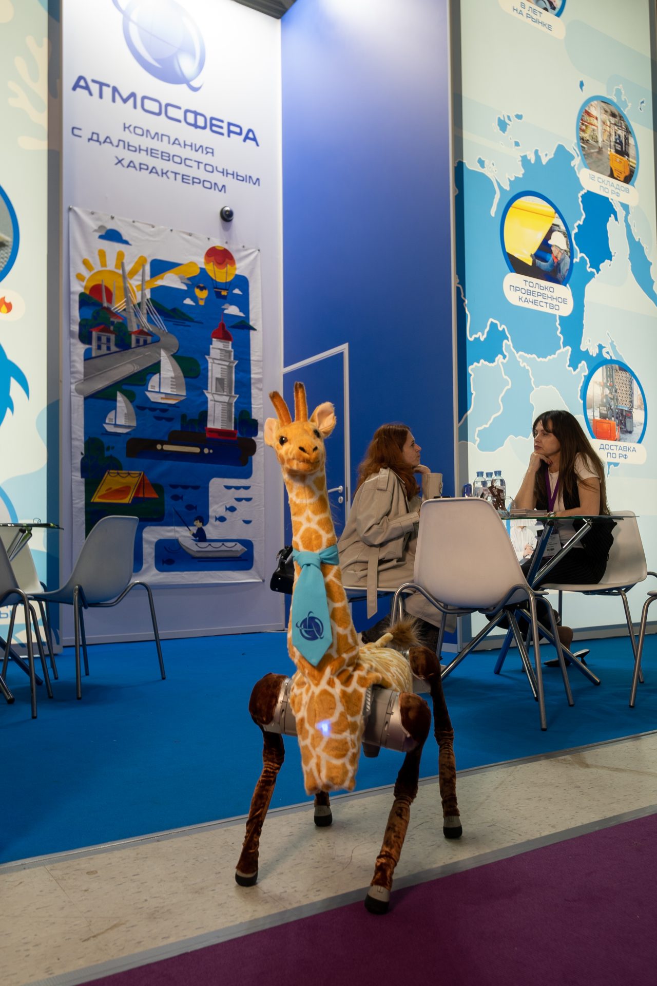 А еще мы презентовали нашего амбассадора — жираф Атмик был рад встрече с действующими и новым партнерами!